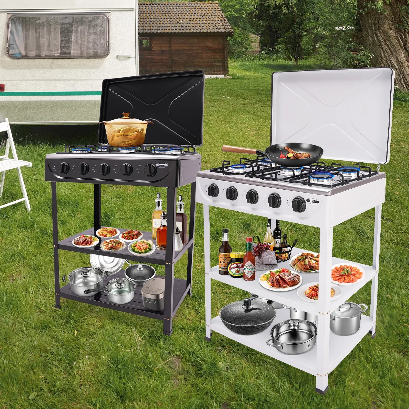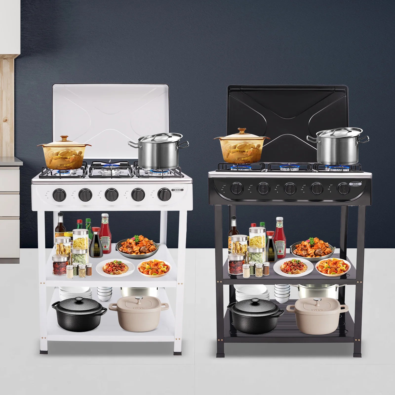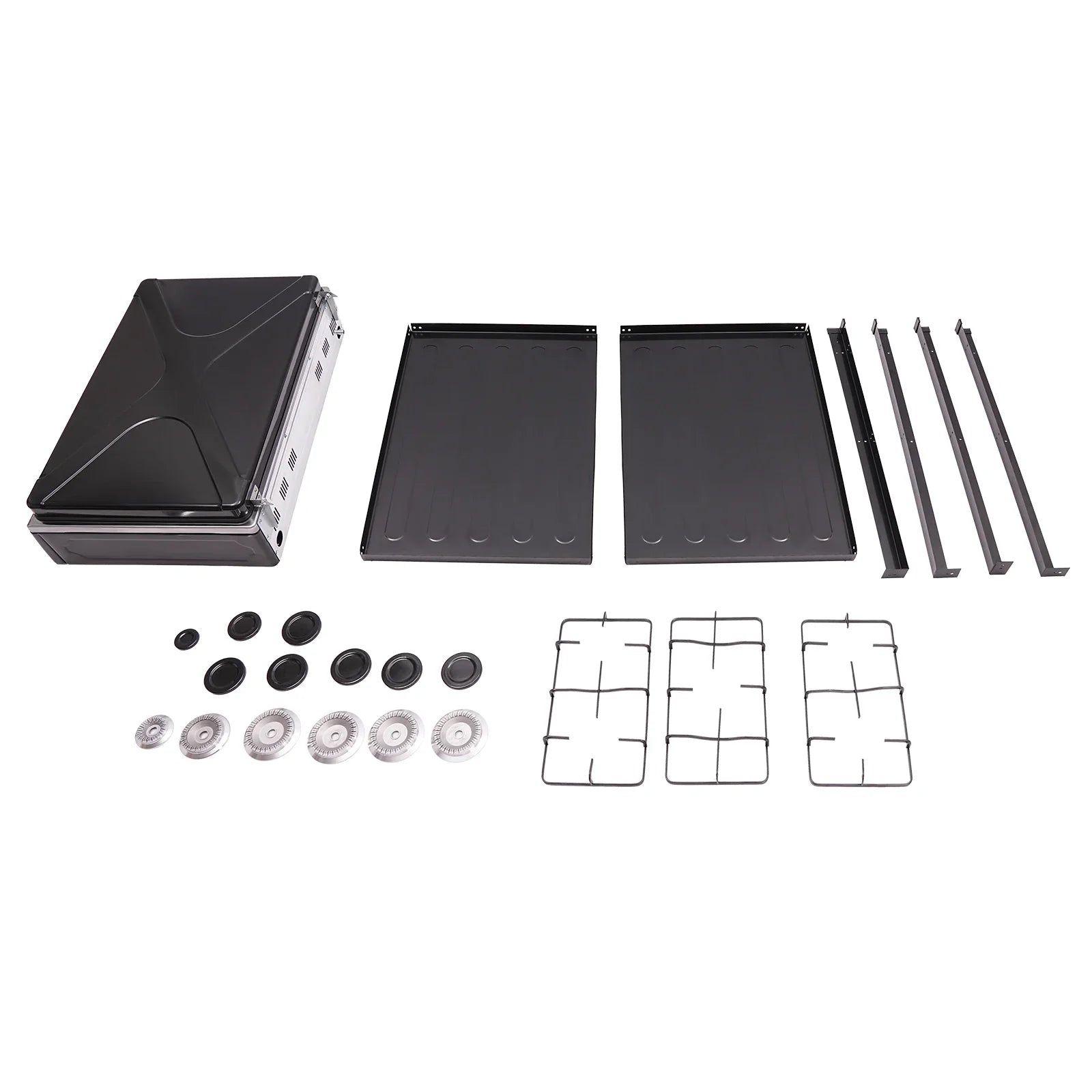 - Designed with practical dimensions in mind: stove measures 64 × 44.5 × 16.5 cm and placement board 61.5 × 42.5 cm, with a total height of 82 cm. Five knobs provide independent control for precise cooking.