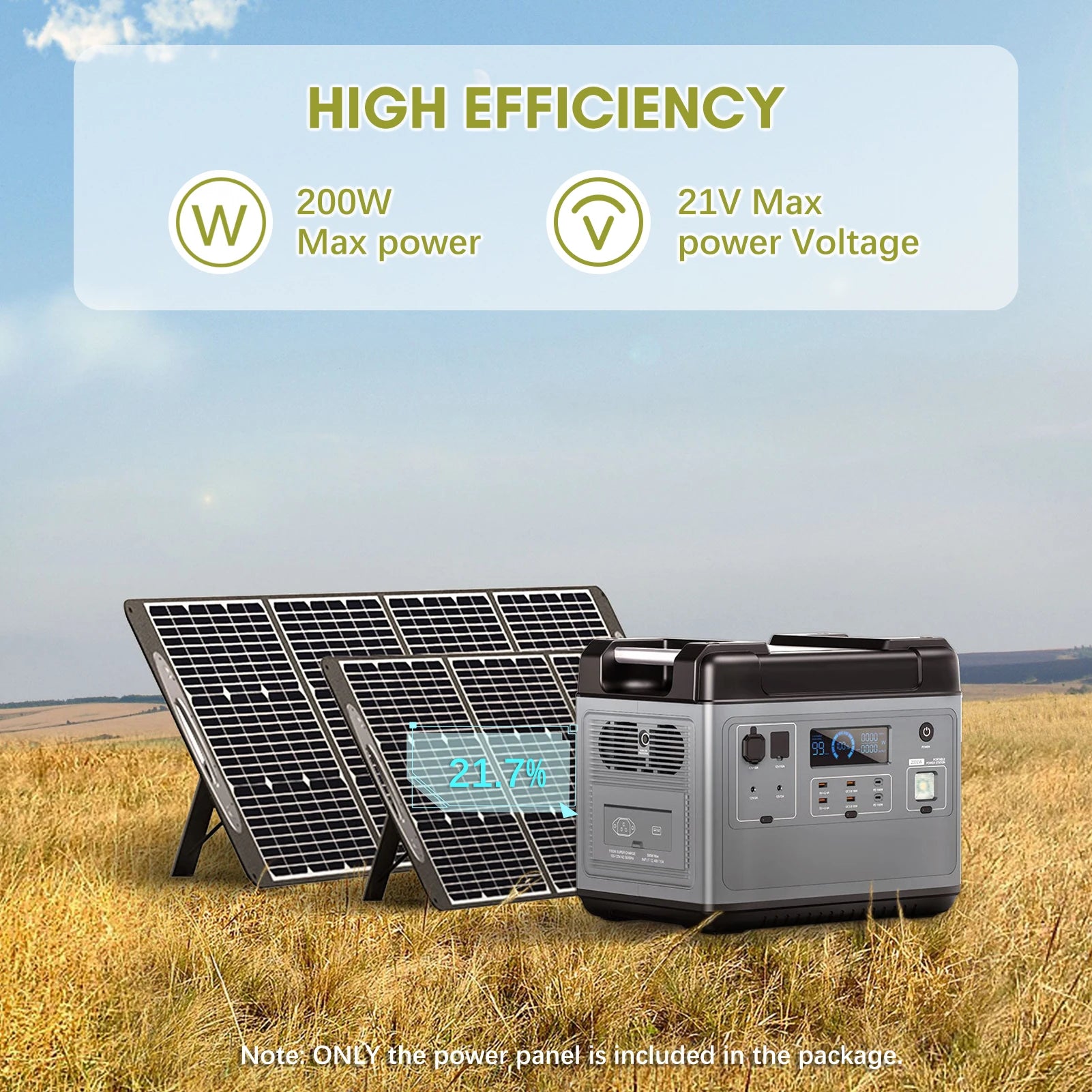 - 200W output delivers up to 200 watts of solar power for your energy needs, helping you power devices, charge batteries, or run small appliances when sun is available.